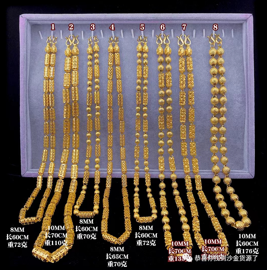 后來說到沙金首飾的價格,老同學說,沙金首飾價格很便宜,一條項鏈也就幾百塊錢。現在大街上戴沙金項鏈的人很多也是有錢人,沙金樣式比較多,款式新穎,幾百塊都能帶出幾萬塊的感覺。最重要的是也不怕被搶了,戴夠了隨時換最新款式。